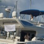 Our yacht is 48′ Azimut Flybride. It has 3 bedrooms, 2 bathrooms, full kitchen with refrigerator and a grill